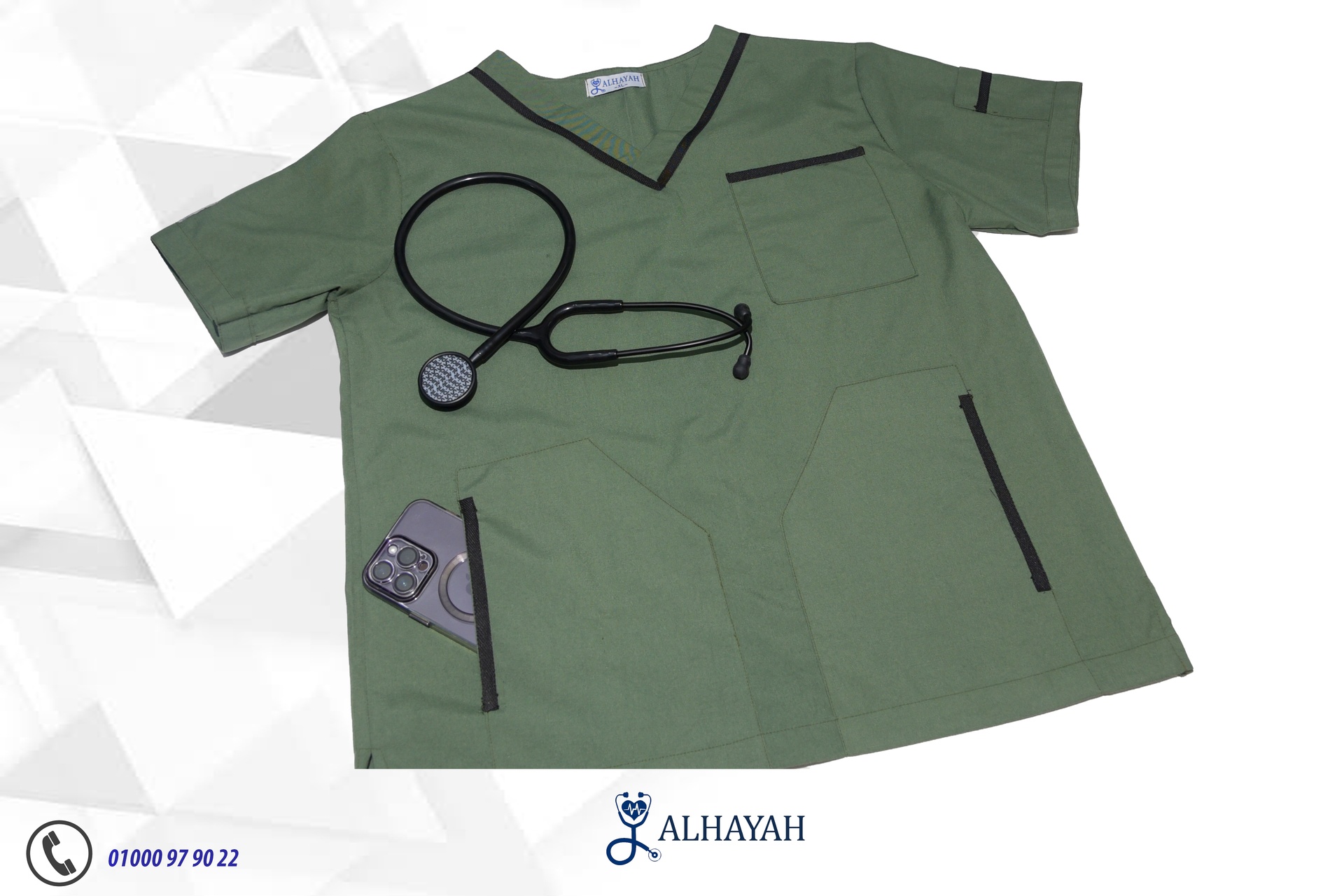 بدلة عمليات الحياة/ M / نص كم / كتان/ زيتوني